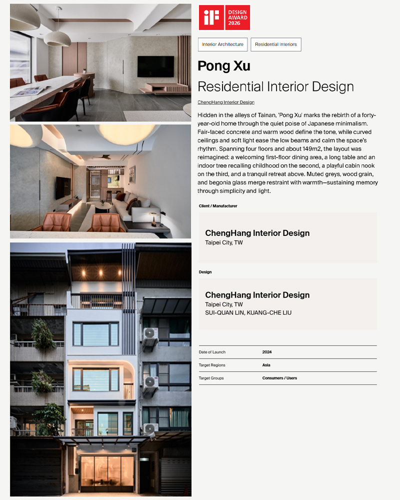 『芃敘 PONG XU』 榮獲《2026IF設計大獎2026_iF_DESIGN_AWARD》-承航室內設計|ChengHang-台北室內設計