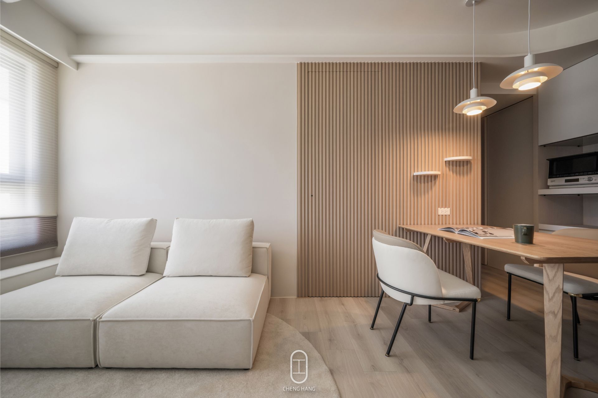 在設計小坪數的室內空間時,需要專注於最大程度地利用每一吋空間,同時保持舒適感和功能性。 北歐風格以清新、簡約、明亮為特點,融合現代風、無印風元素,在搭配上保留融合各風格的特點,如淡雅的色調、自然材料、簡約的線條等,加入奶茶色調的組合配上充足的自然光線也可以讓空間看起來更明亮寬敞。